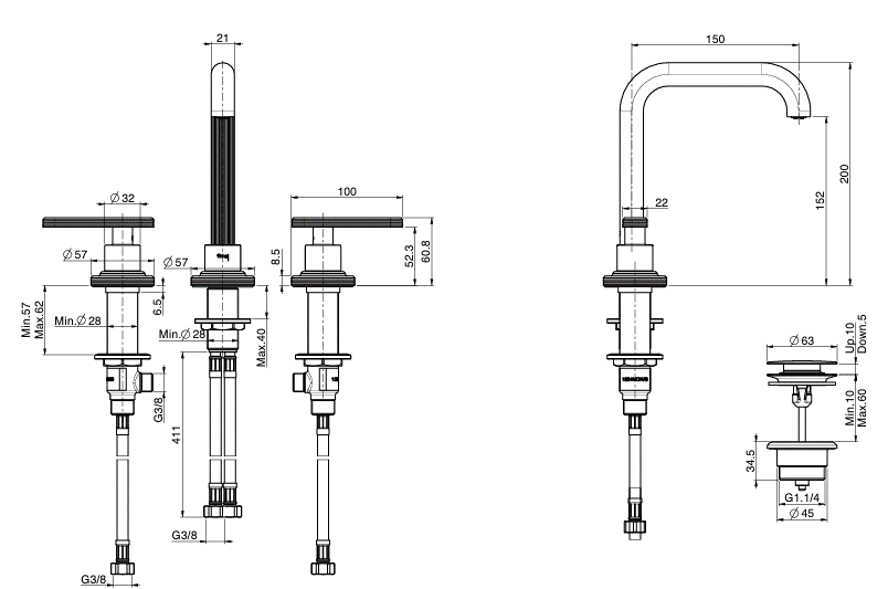 Carlo Frattini Park Line Bateria umywalkowa 3-otworowa z korkiem klik klak chrom F1301CR