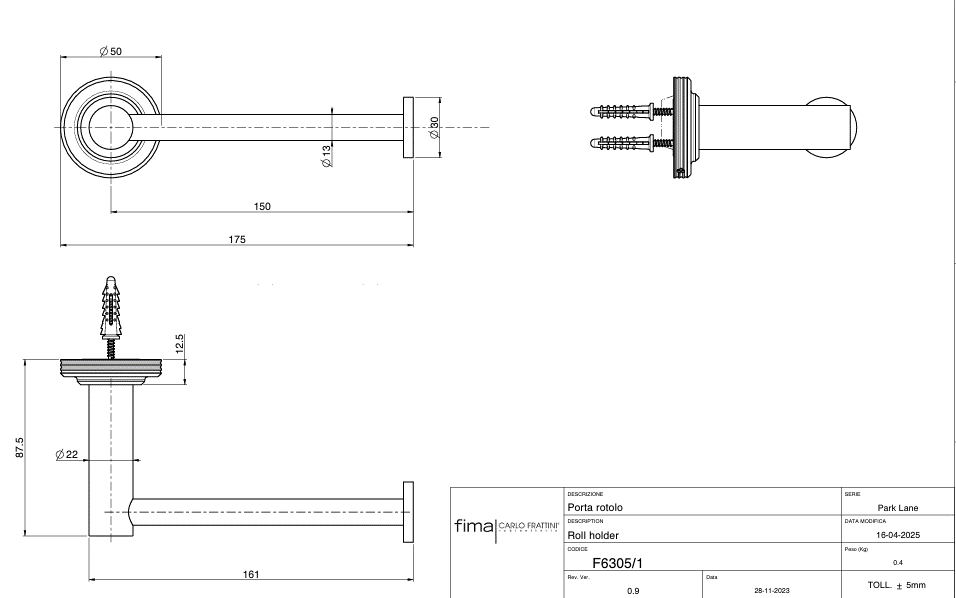 Carlo Frattini Park Line Uchwyt na papier toaletowy chrom F6305/1CR
