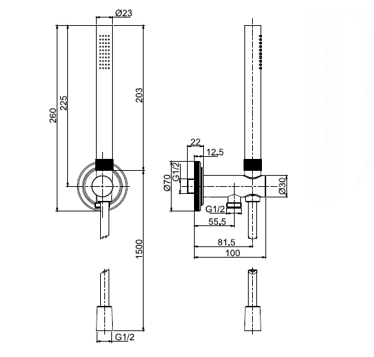 Uchwyt z przyłączem wody, słuchawka z dyszami antykamiennymi, wąż prysznicowy chromalux