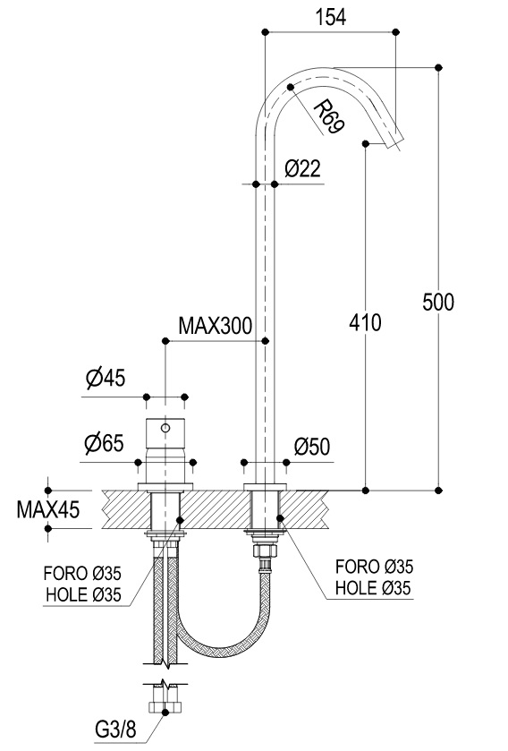 Ritmonio Diametro35 Bateria umywalkowa 2-otworowa stal nierdzewna E0BA0125H2INOX