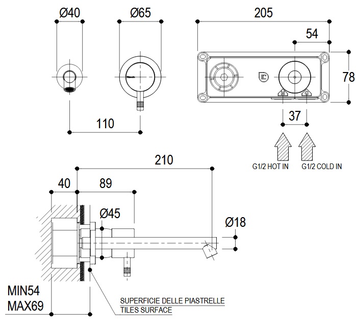 Ritmonio Diametro35 Bateria umywalkowa ścienna podtynkowa chrom E0BA0117S/P