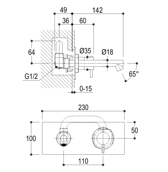 Ritmonio Diametro35 Bateria umywalkowa ścienna podtynkowa chrom E0BA0440SXCRL