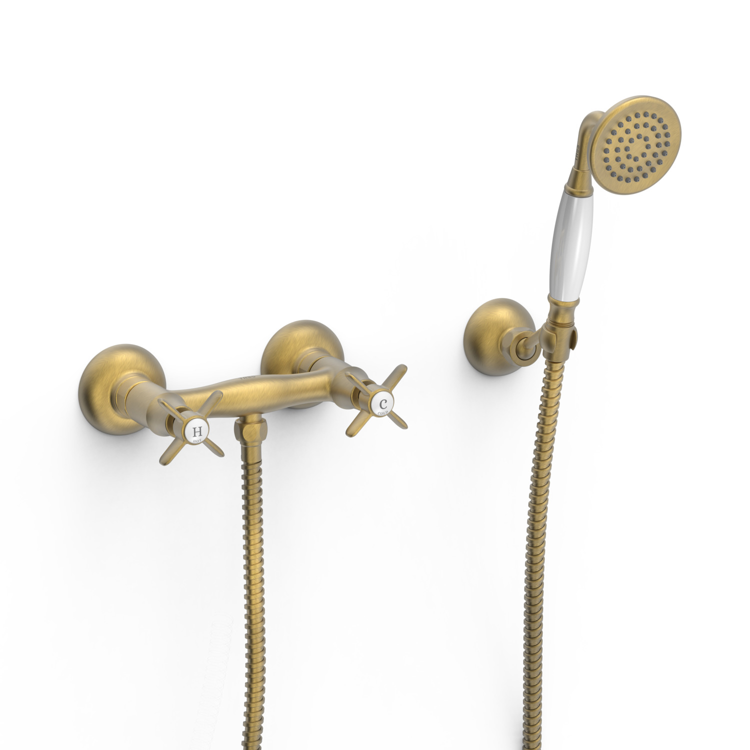 Tres Clasic Bateria prysznicowa ze słuchawką i wężem mosiądz antyczny mat 24216301LM