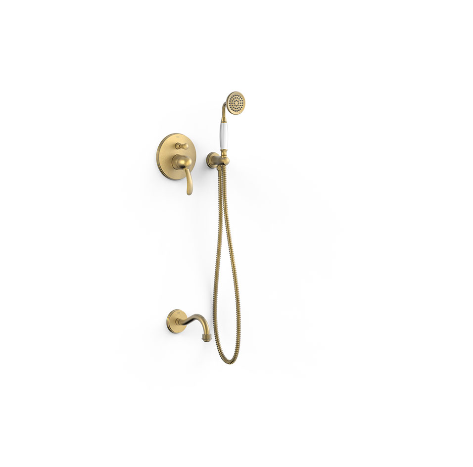 Tres Clasic Bateria prysznicowa podtynkowa ze słuchawką, wężem i wylewką mosiądz antyczny mat 24218005LM