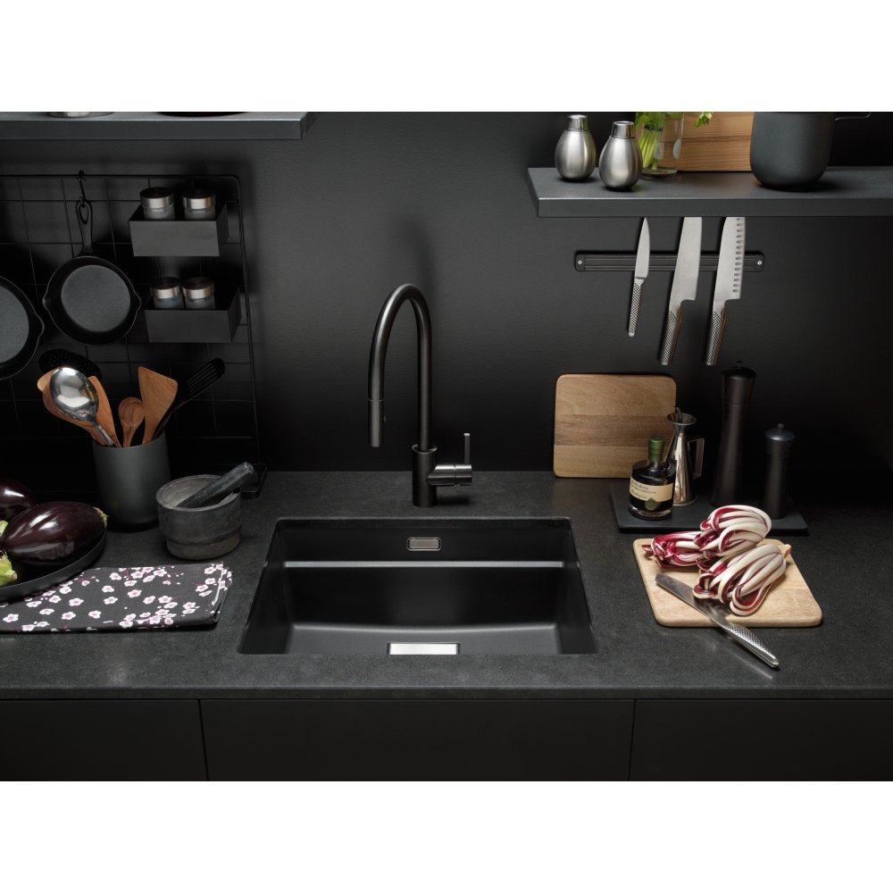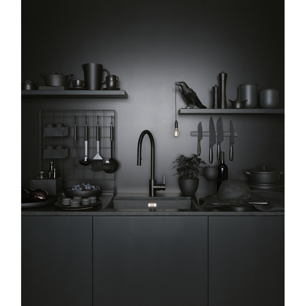 Franke Eos Neo Bateria kuchenna jednouchwytowa z wyciąganą wylewką czarna stal szlachetna 115.0613.671