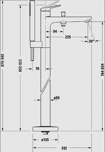 Wysokość wylewki: 76,4-83,4 cm
