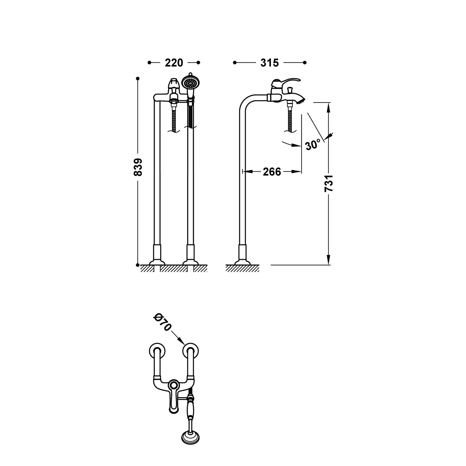 Tres Clasic Bateria wannowa i prysznicowa ze słuchawką i wężem antyczny mosiądz 24219402LV