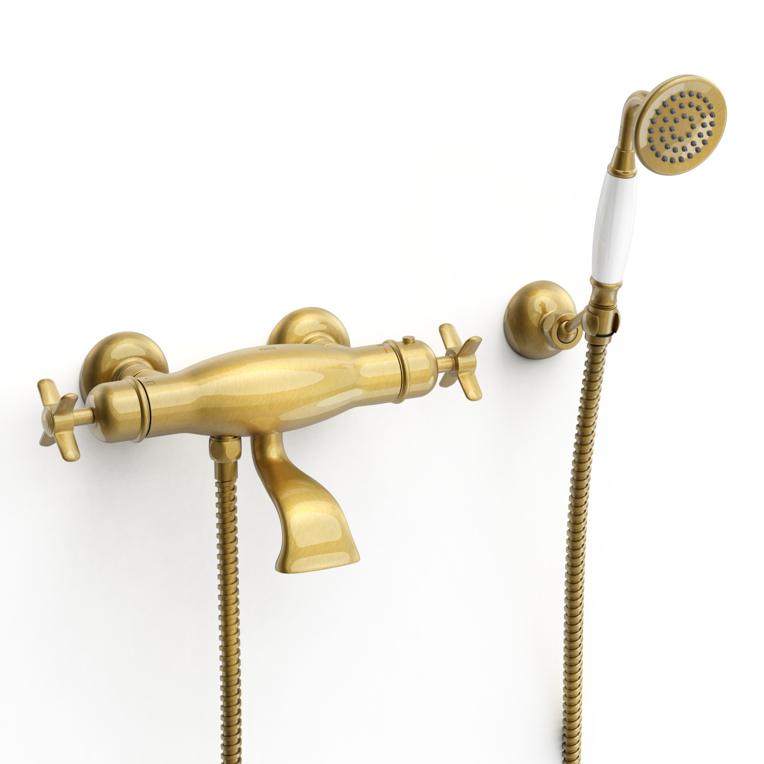 Tres Clasic Bateria wannowa i prysznicowa termostatyczna ze słuchawką i wężem mosiądz antyczny 24217409LV