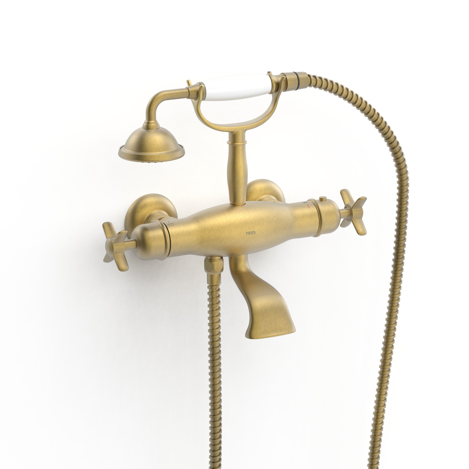 Tres Clasic Bateria wannowa i prysznicowa termostatyczna ze słuchawką i wężem mosiądz antyczny mat 24217609LM