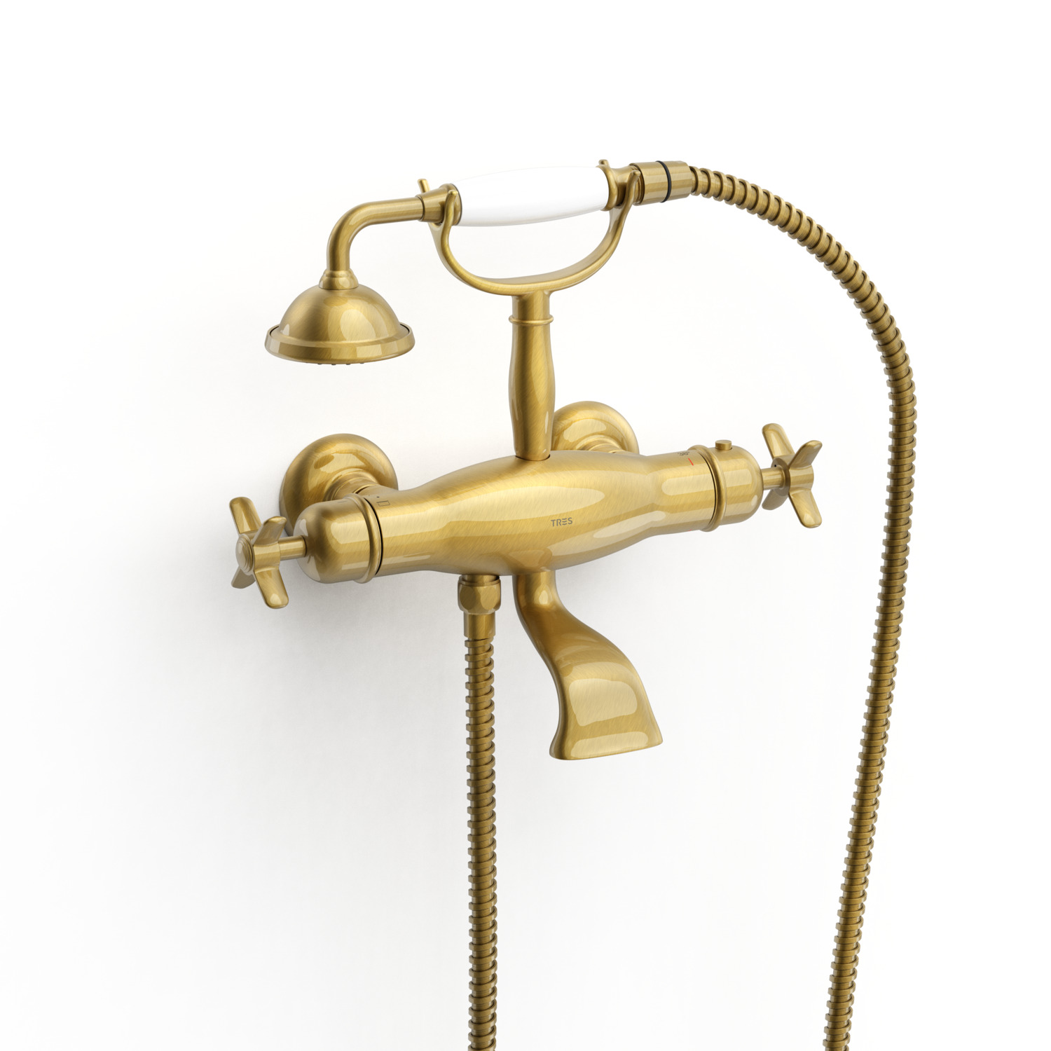 Tres Clasic Bateria wannowa i prysznicowa termostatyczna ze słuchawką i wężem mosiądz antyczny 24217609LV