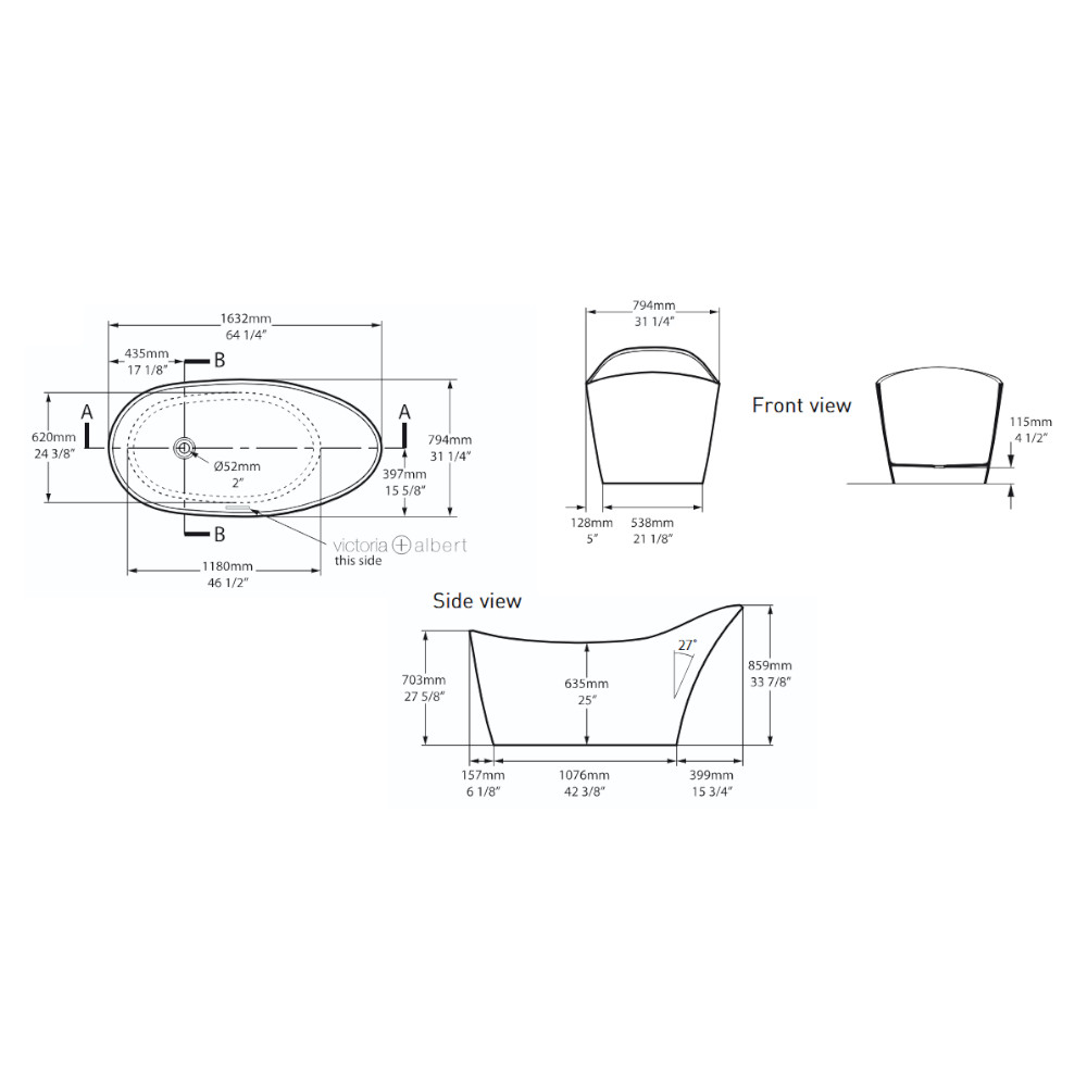 Victoria Albert Amalfi Wanna Wolnostojąca 163,2x79,4 cm Biały mat AMLM-N-SM-NO
