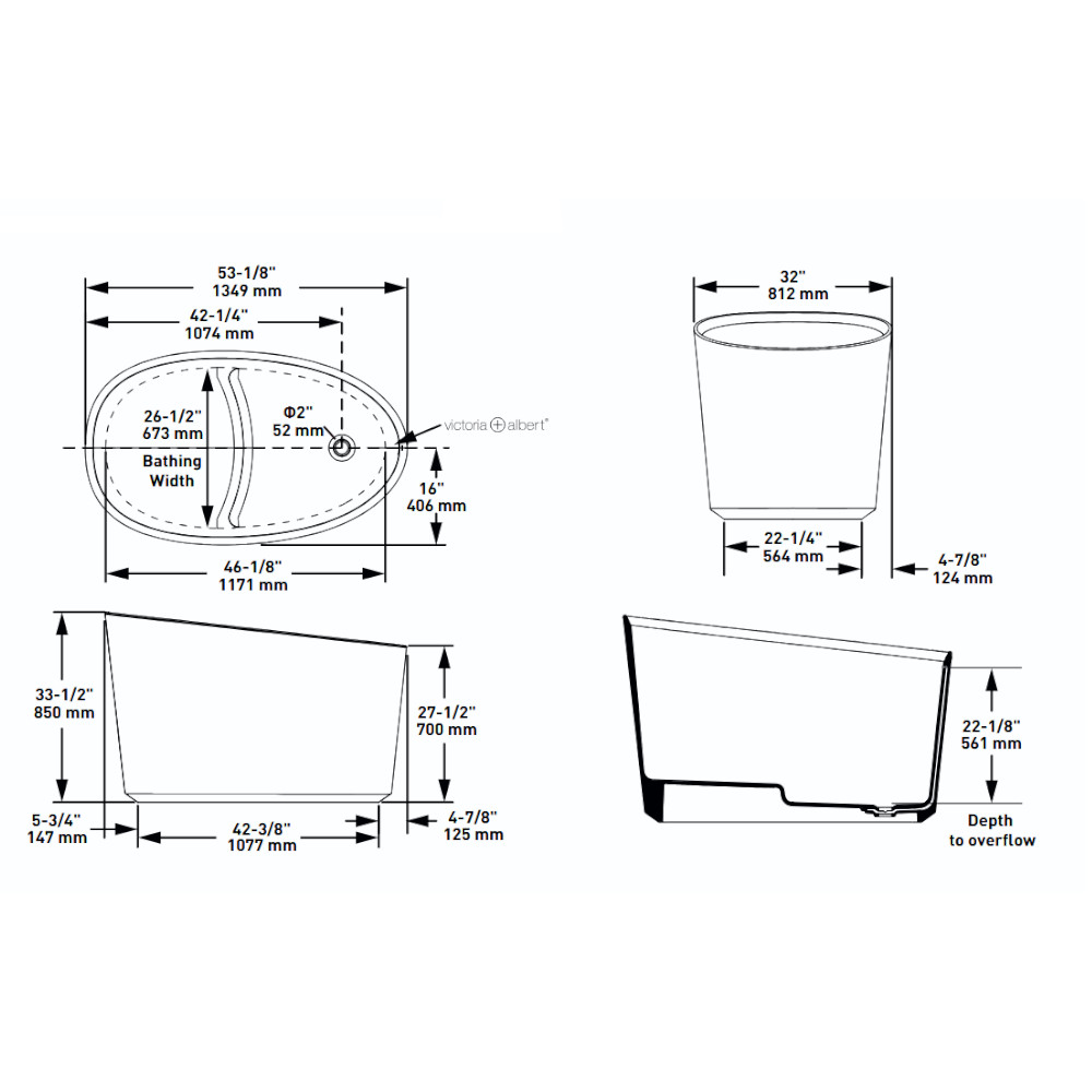Victoria+Albert Kerid Wanna Wolnostojąca 134,9x81,2 cm Biała mat KERM-N-SM-IO