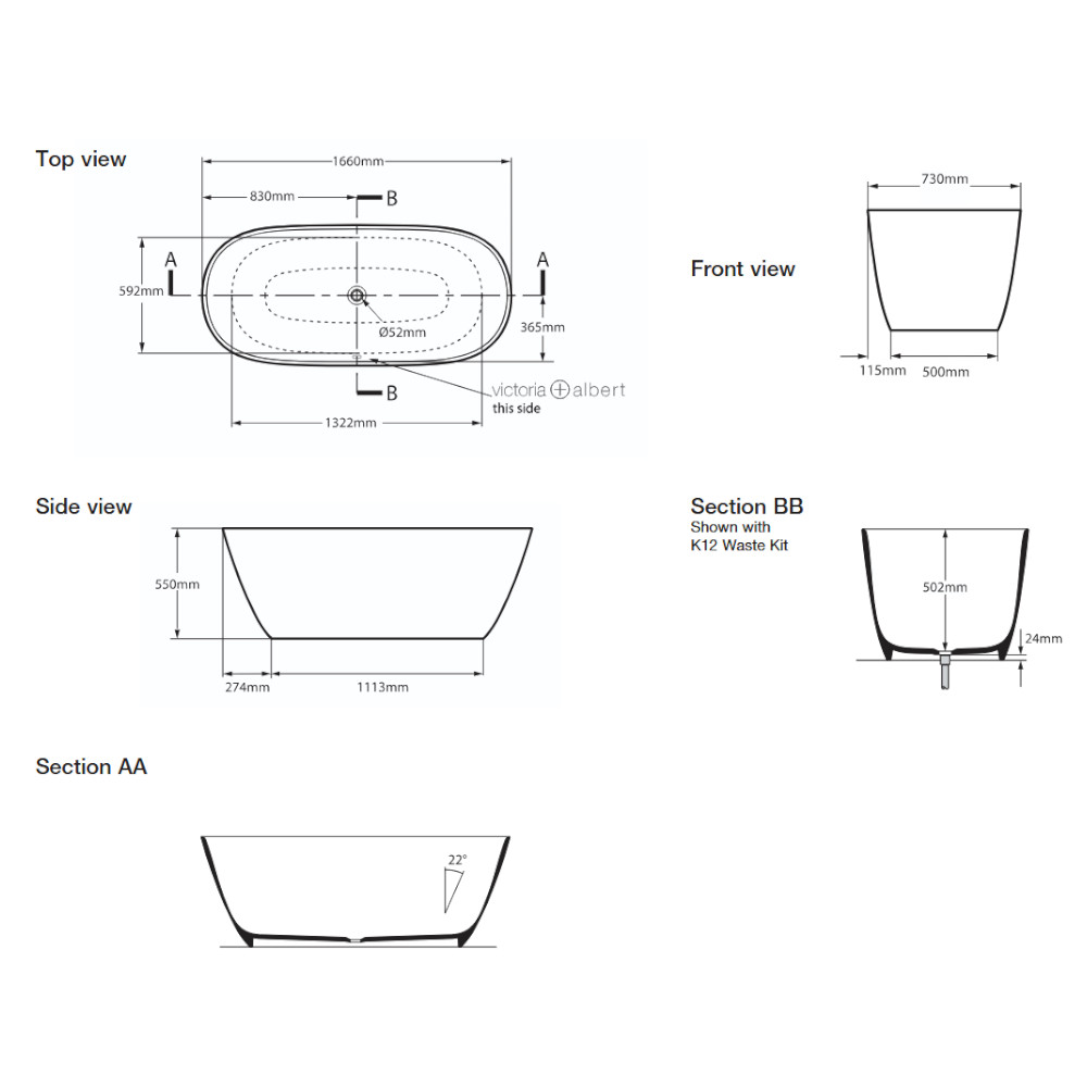 Victoria+Albert Lussari 1700 Wanna Wolnostojąca 166x73 cm Biała LU2-N-SW-NO