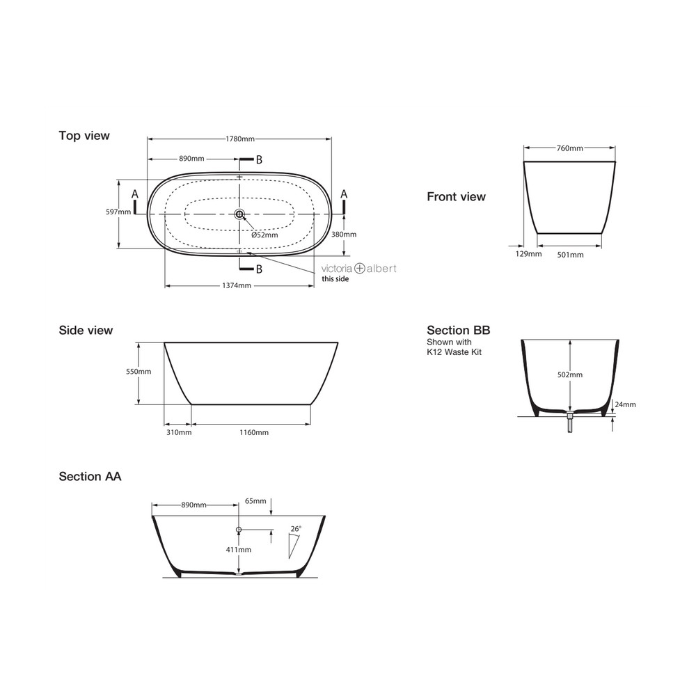 Victoria+Albert Lussari 1800 Wanna Wolnostojąca 178x76 cm Biała mat LU3M-N-SM-NO
