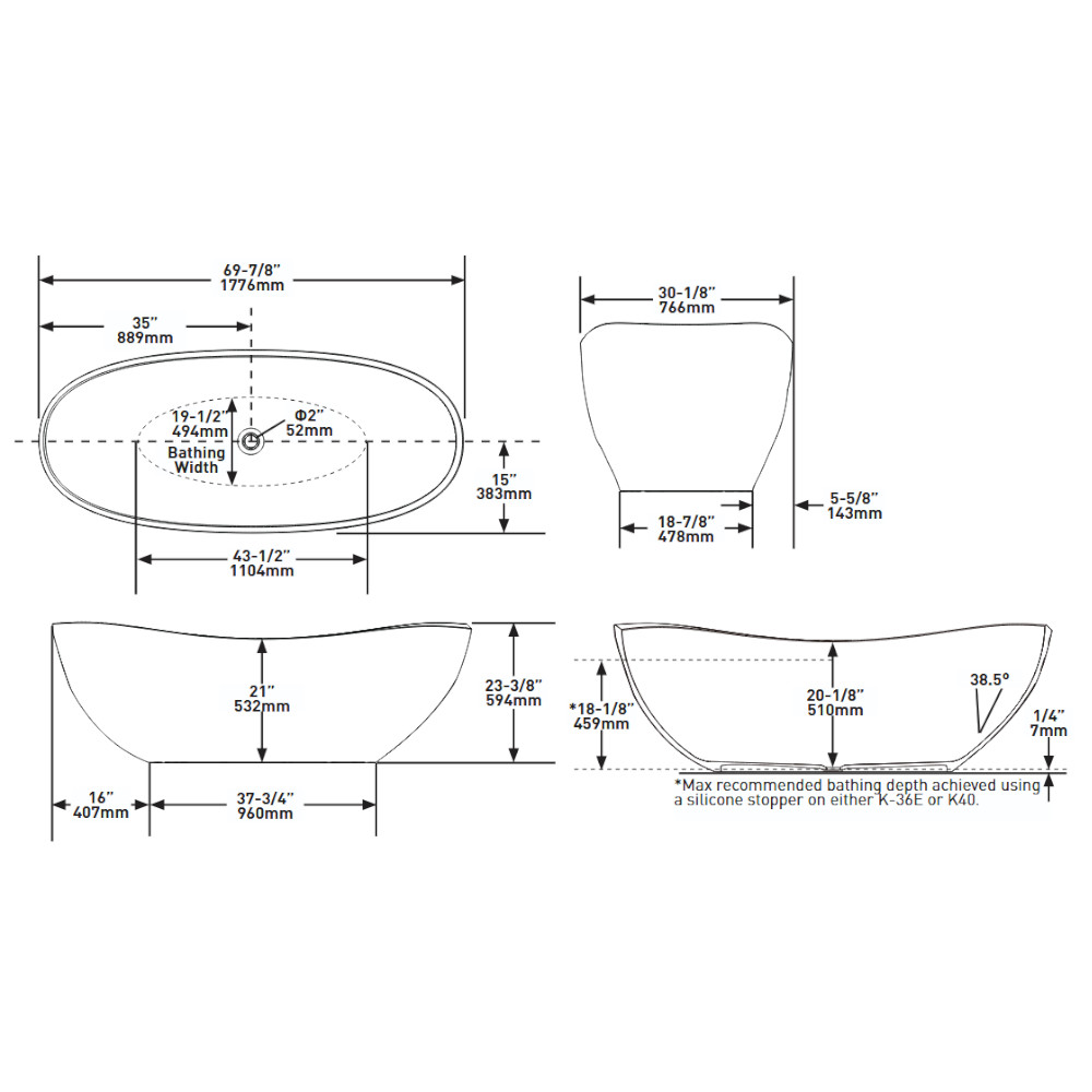Victoria+Albert Seros 1800 Wanna Wolnostojąca 177,6x76,6 cm Biała SE2-N-SW-NO