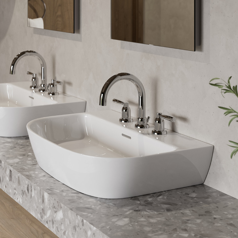 Victoria+Albert Lussari 60 Umywalka nablatowa 59,8x41,2 cm z trzema otworami Biała mat DB-LUS-3TH-M-600-IO