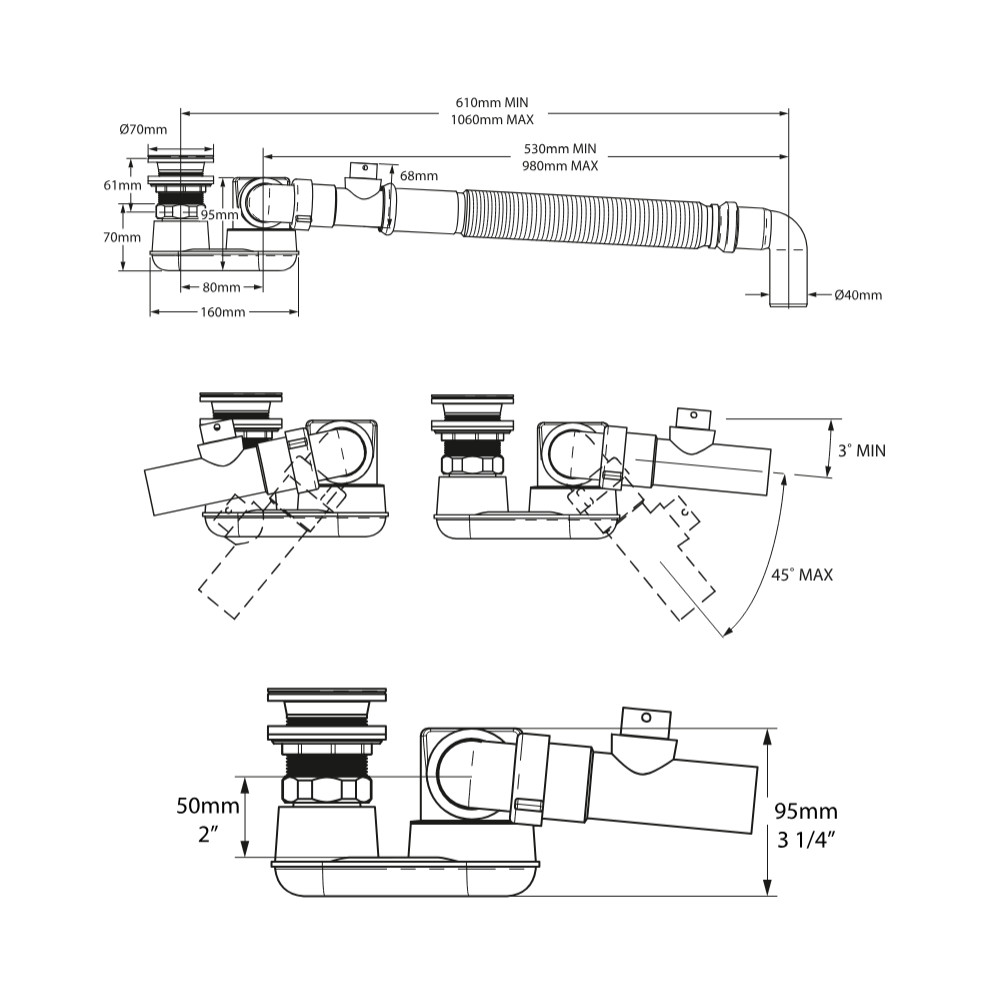 Specjalny zestaw odpływowy do wanien bez przelewu