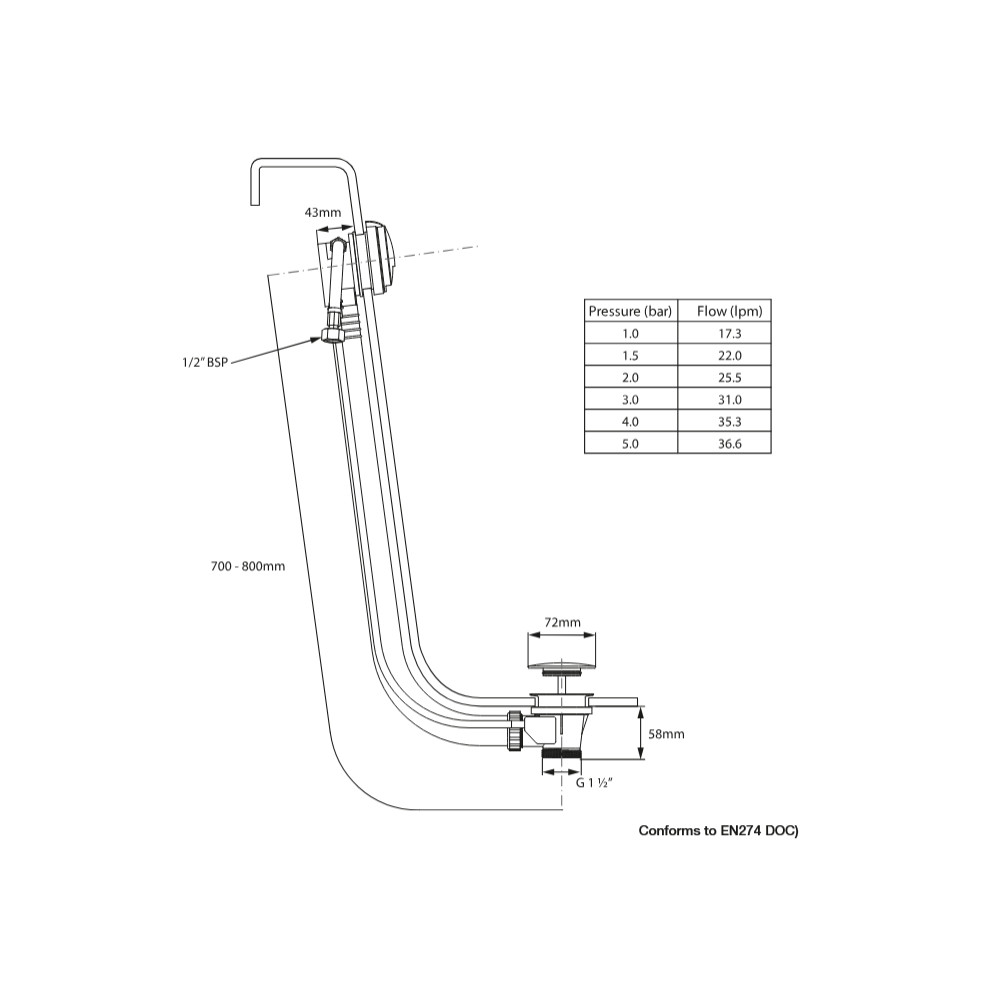 Średnica odpływu: 42 mm
