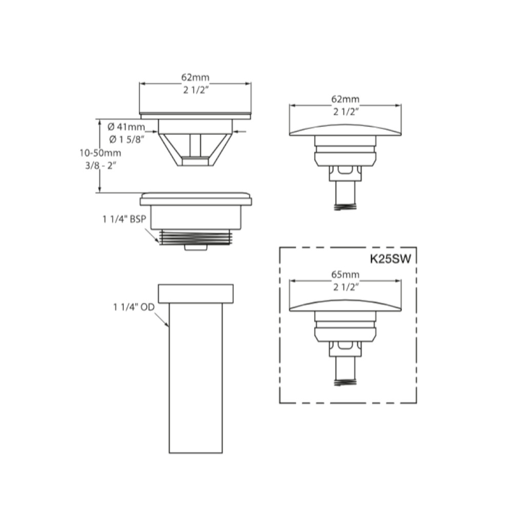 Victoria+Albert Kit 25 Uniwersalny odpływ umywalkowy z korkiem „push control Szczotkowany nikiel K-25-BN