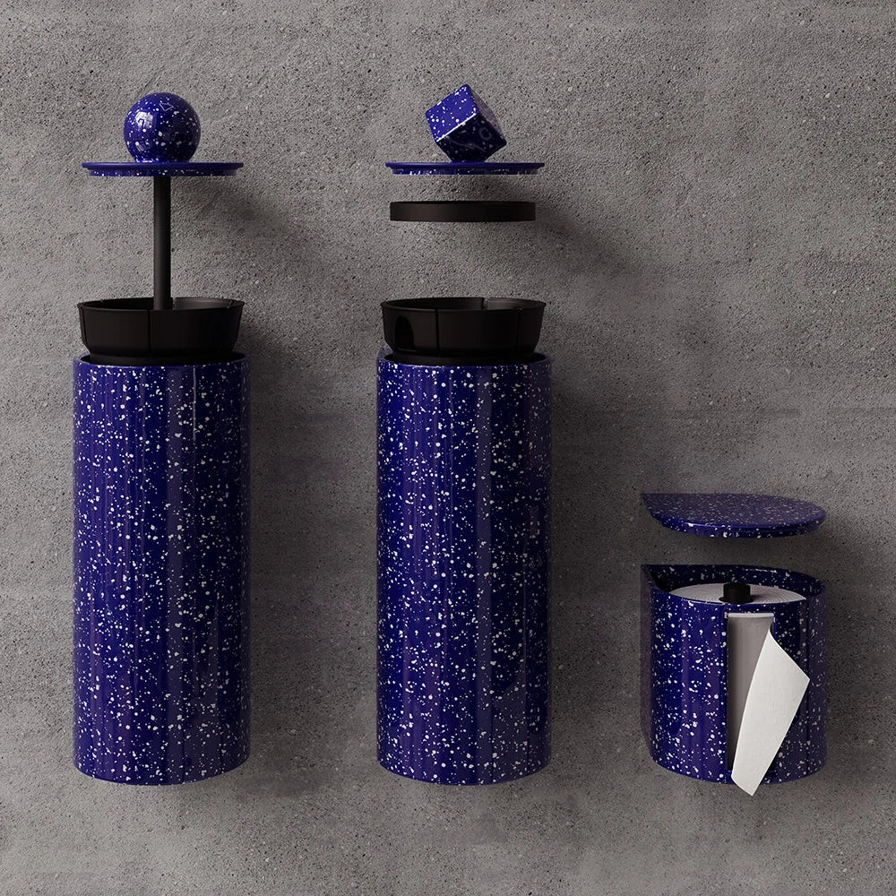Uchwyt na papier, szczotka i kosz na śmieci: trio zaprojektowane z myślą o połączeniu stylu, higieny i wydajności.