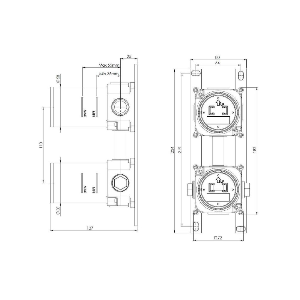 Głębokość montażu: 35 - 55 mm