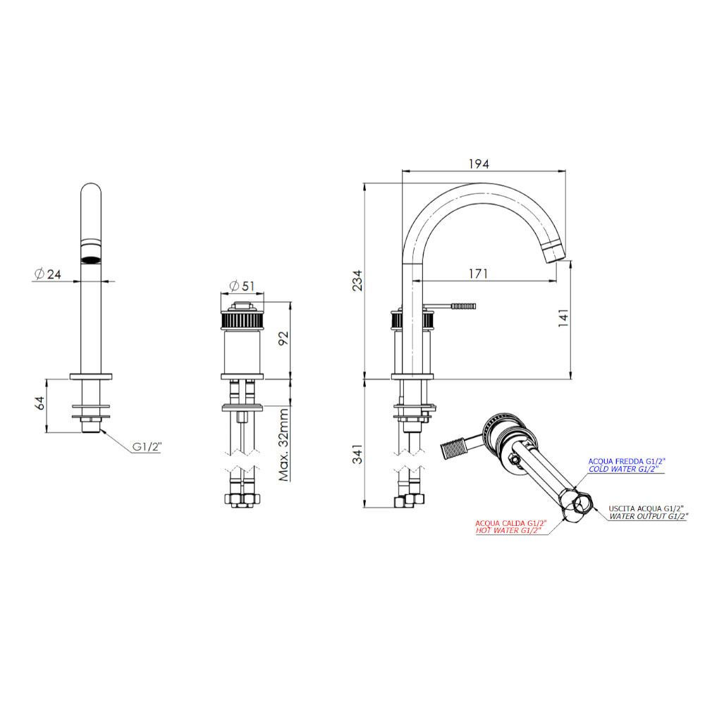 Remer Atelier Bateria umywalkowa jednouchwytowa dwuotworowa Brushed Gold AL57BG