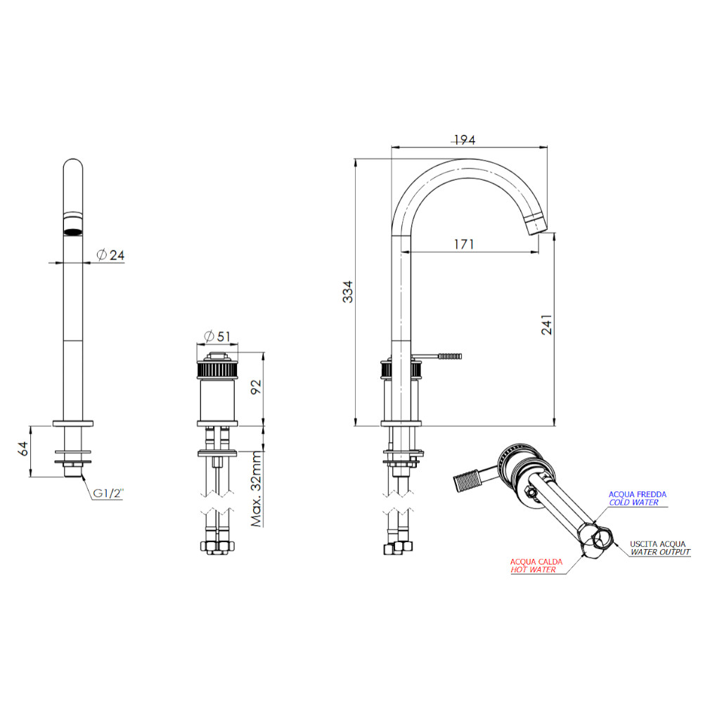 Remer Atelier Bateria umywalkowa jednouchwytowa wysoka dwuotworowa Brushed Gold AL57LBG