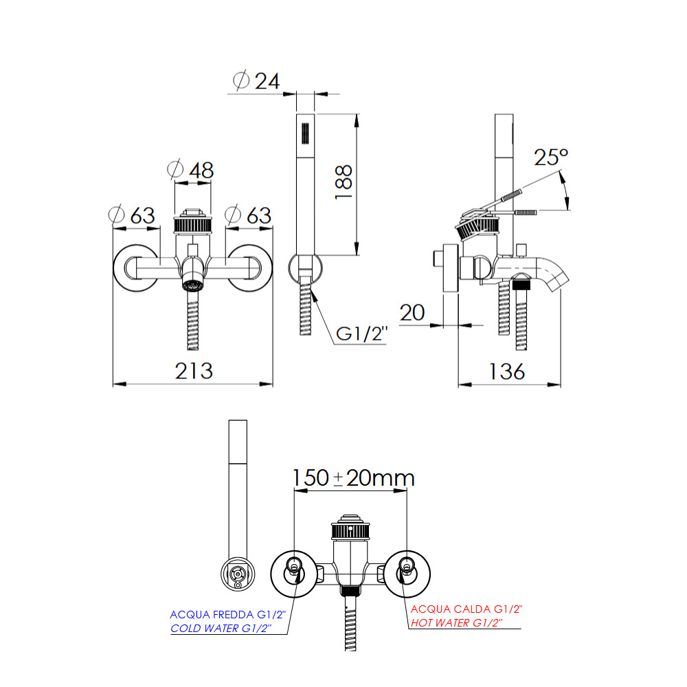 Remer Atelier Bateria wannowo-natryskowa ścienna z zestawem natryskowym Brushed Gold AL02BG