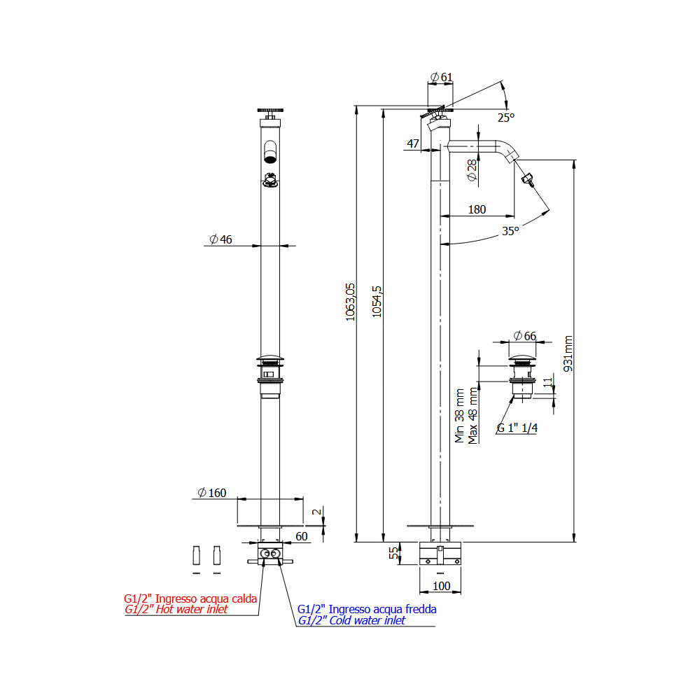 Wysokość wylewki: 931 mm