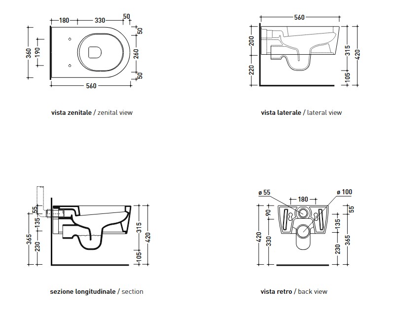 Flaminia Link Miska Wc wisząca bez deski sedesowej 36x56 cm Biały 5051/WCNER