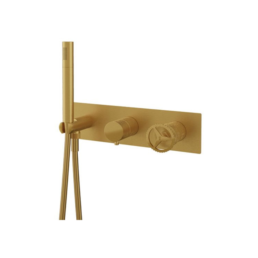 Remer Chrono Bateria natryskowa podtynkowa z zestawem natryskowym 2-drożna - element zewnętrzny Brushed Gold CH97D2WBBG