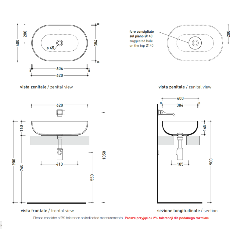 Flaminia Applight Umywalka Nablatowa Biały Mat 62x40x16 cm AP62ALAT