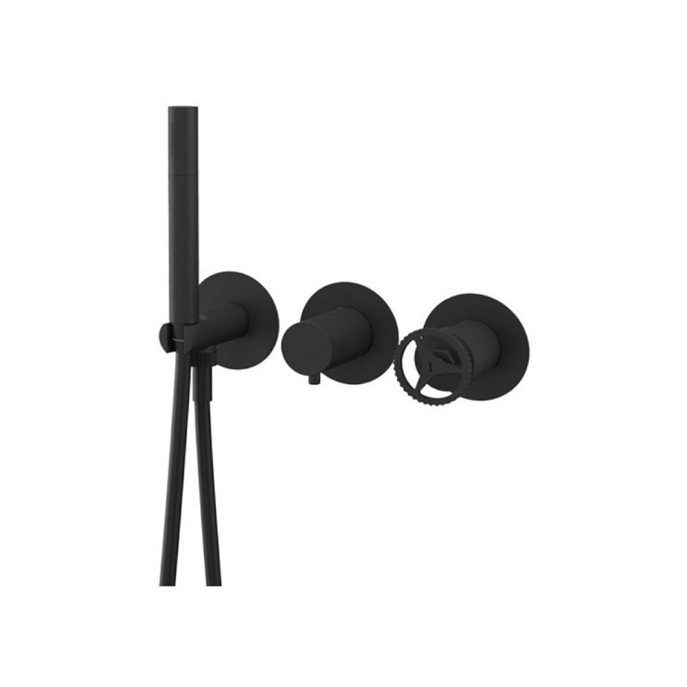 Remer Chrono Bateria natryskowa podtynkowa z zestawem natryskowym 3-drożna - element zewnętrzny Matt Black CH97D3PWBNO