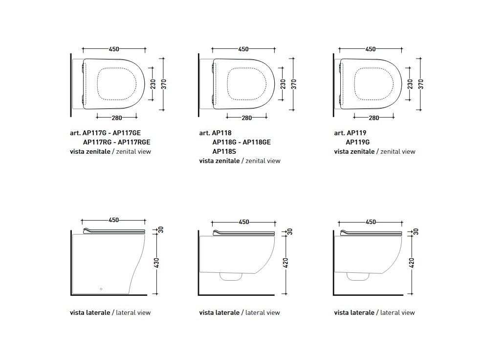 - Miska WC: AP118, AP118G, AP119, AP119G, AP117G,