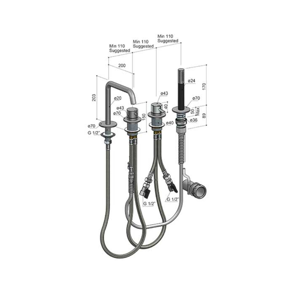 Rozstaw pomiędzy otworami: 110 mm