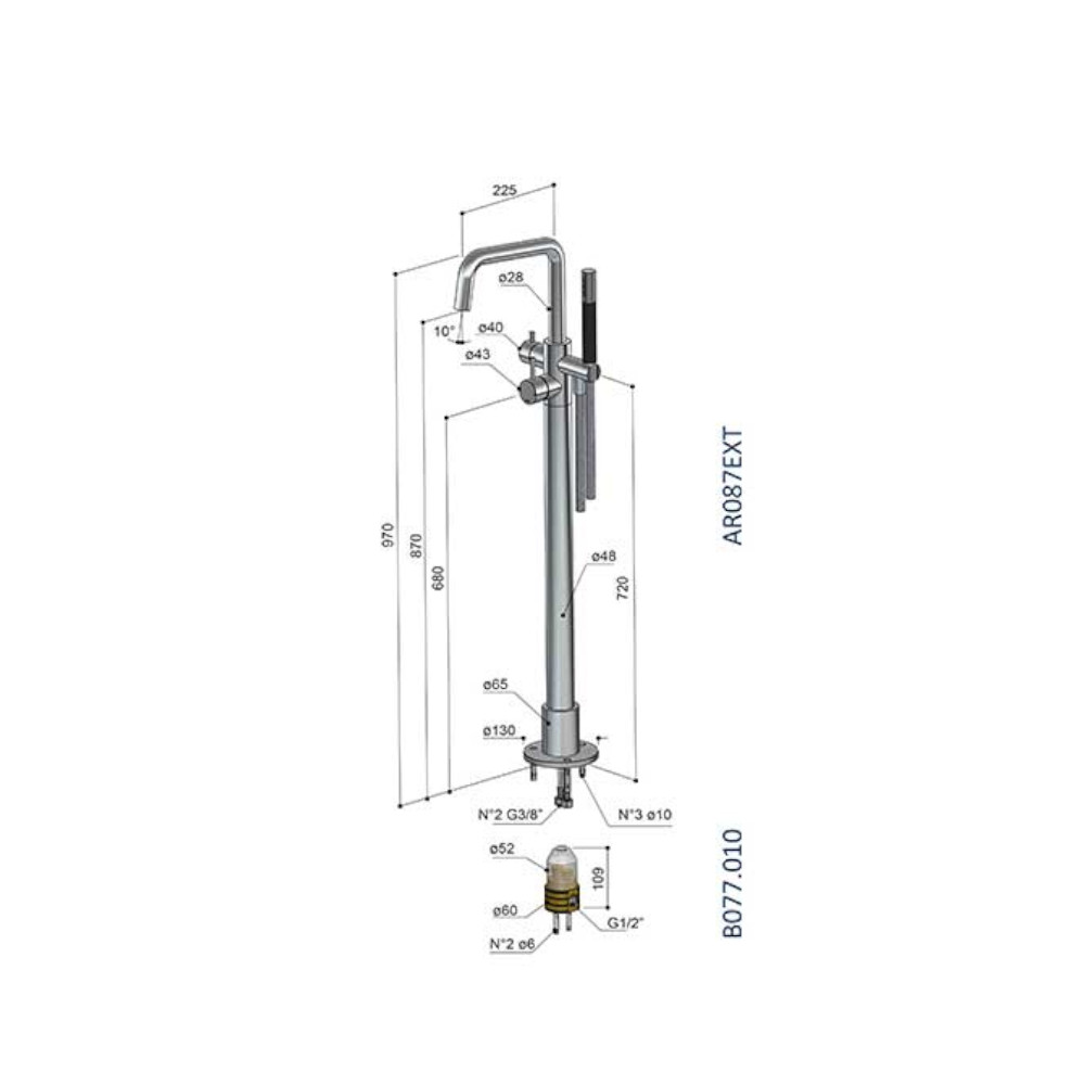 Hotbath Archie Bateria wannowa wolonostojąca ze słuchawką prysznicową i wężem prysznicowym Steel Brushed AR087.IX