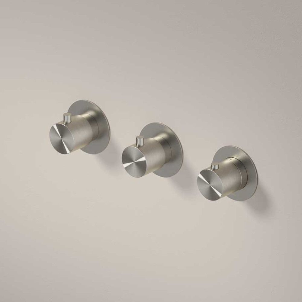 Hotbath Archie Bateria natryskowa termostatyczna podtynkowa z dwoma zaworami - element zewnętrzny Steel Brushed AR7067.IX