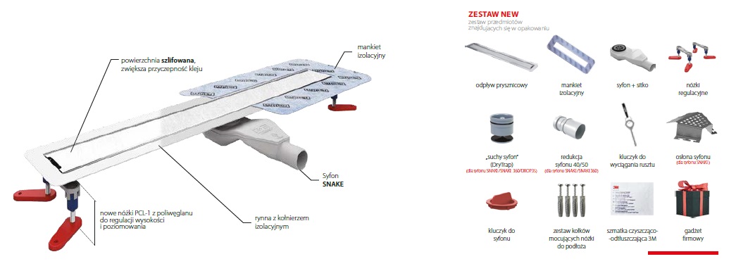 Rynienki prysznicowe INVISIBLE to koncepcja wizualnie minimalistycznej wersji odpływu liniowego. Zabudowana rynienka jest całkowicie niewidoczna. Jedyne, co widzimy to szczeliny w posadzce przez które odpływa woda. Rozwiązanie to polecamy dla posadzek wykonanych z materiałów, które można po docięciu estetycznie obrobić (np. gres lub granit). W zestawie znajduje się szmatka odtłuszczająca do przetarcia powierzchni przed przyklejeniem materiału.