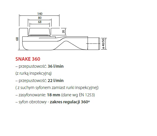 - przepustowość 22 l/min ( z suchym syfonem zamiast rurki inspekcyjnej )