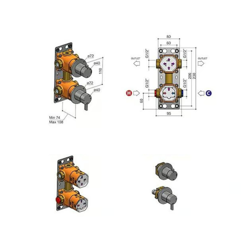 Hotbath ArchieFlag Zawór natryskowy 2-drożny - element zewnętrzny Gun Metal PVD AF029.BGP