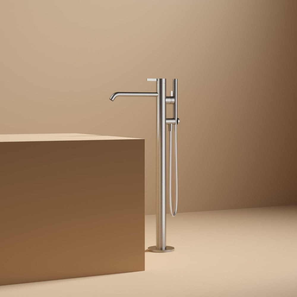 Hotbath ArchieFlag Bateria wannowa wolonostojąca ze słuchawką prysznicową i wężem prysznicowym Steel Brushed AF087.IX