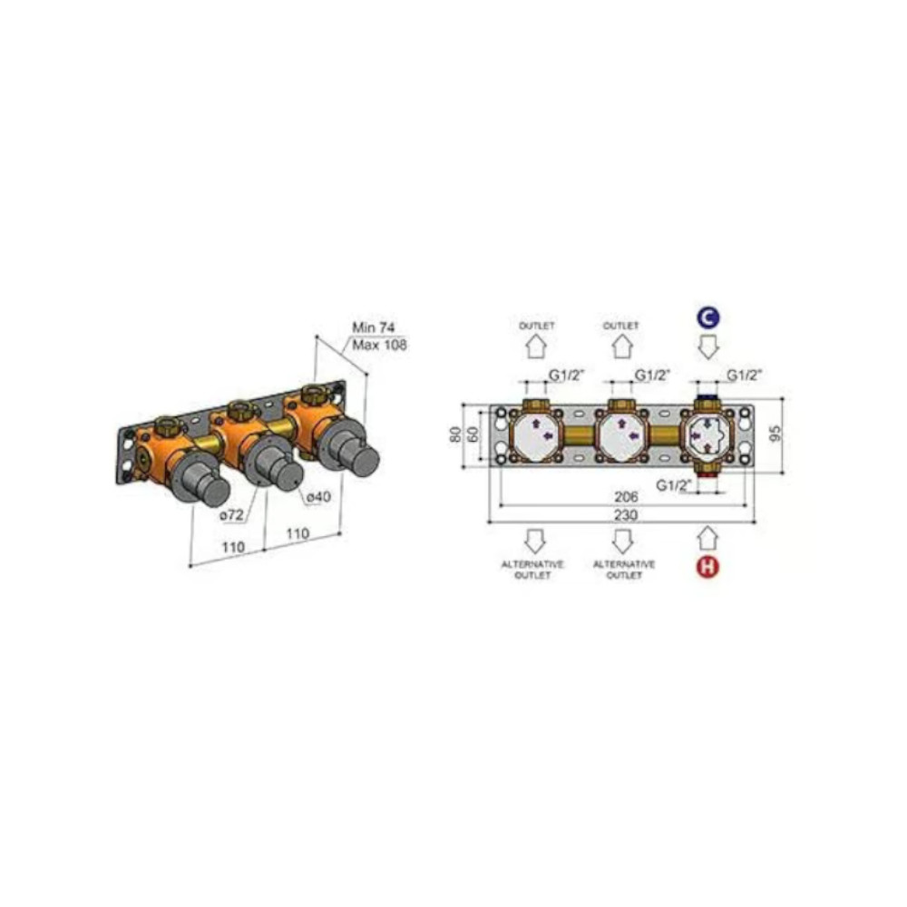 Hotbath ArchieFlag Element podtynkowy do baterii termostatycznej z dwoma zaworami odcinającymi HBAF7067
