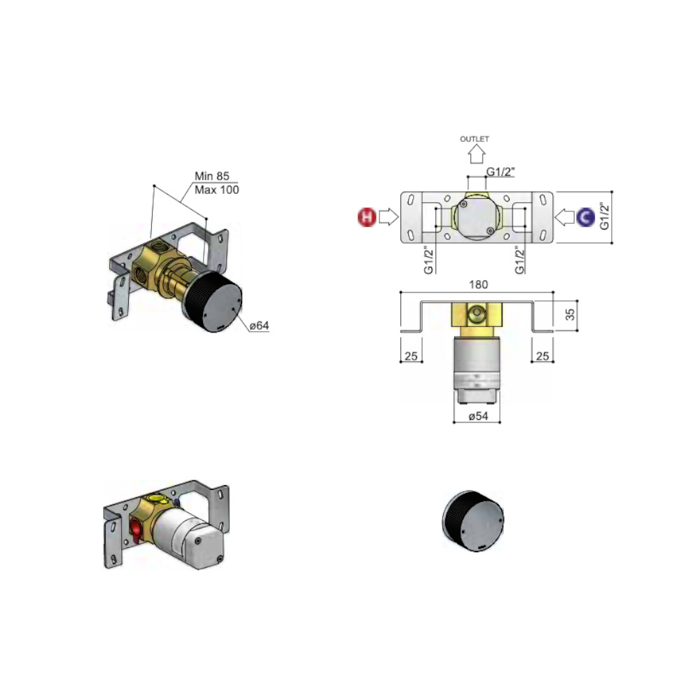 Hotbath Guy Row Bateria natryskowa podtynkowa - element zewnętrzny Tuscan Bronze GY031R.TB