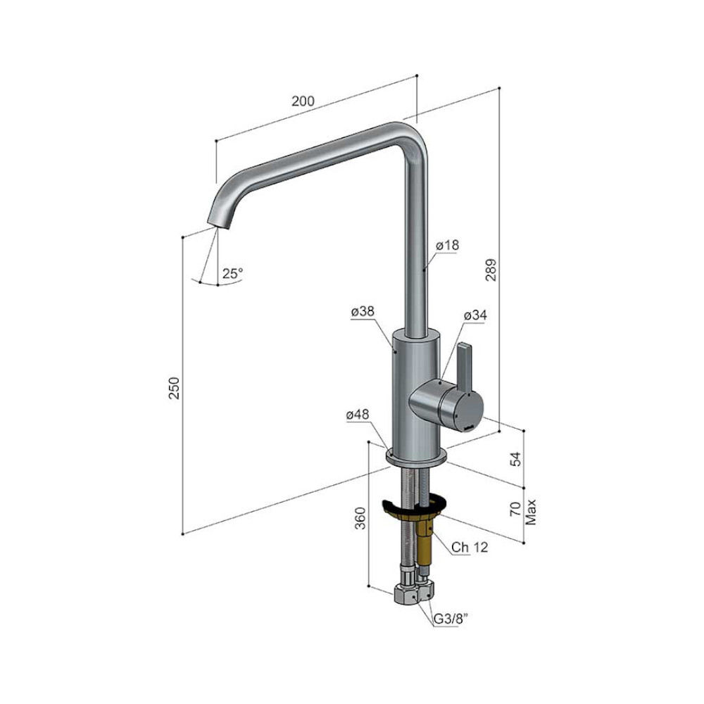 Wysokość wylewki: 250 mm