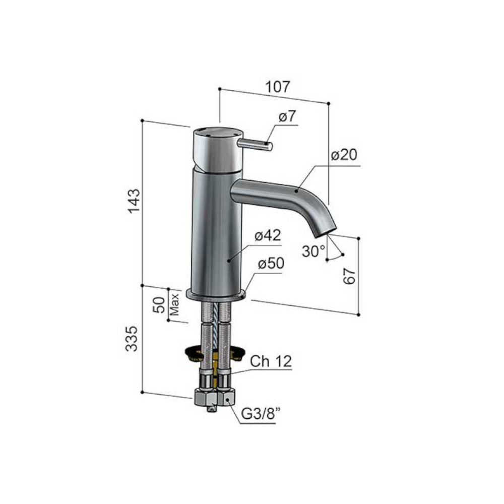 Wysięg wylewki: 107 mm