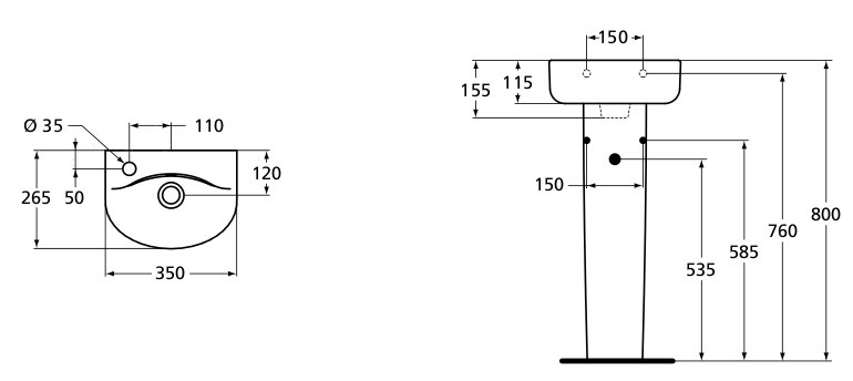 Ideal Standard Connect Arc Umywalka ścienna 35x26,5 cm biała E791401