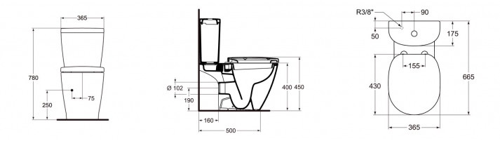 Ideal Standard Connect Miska WC do kompaktu 36,5x66,5 cm biała E803701