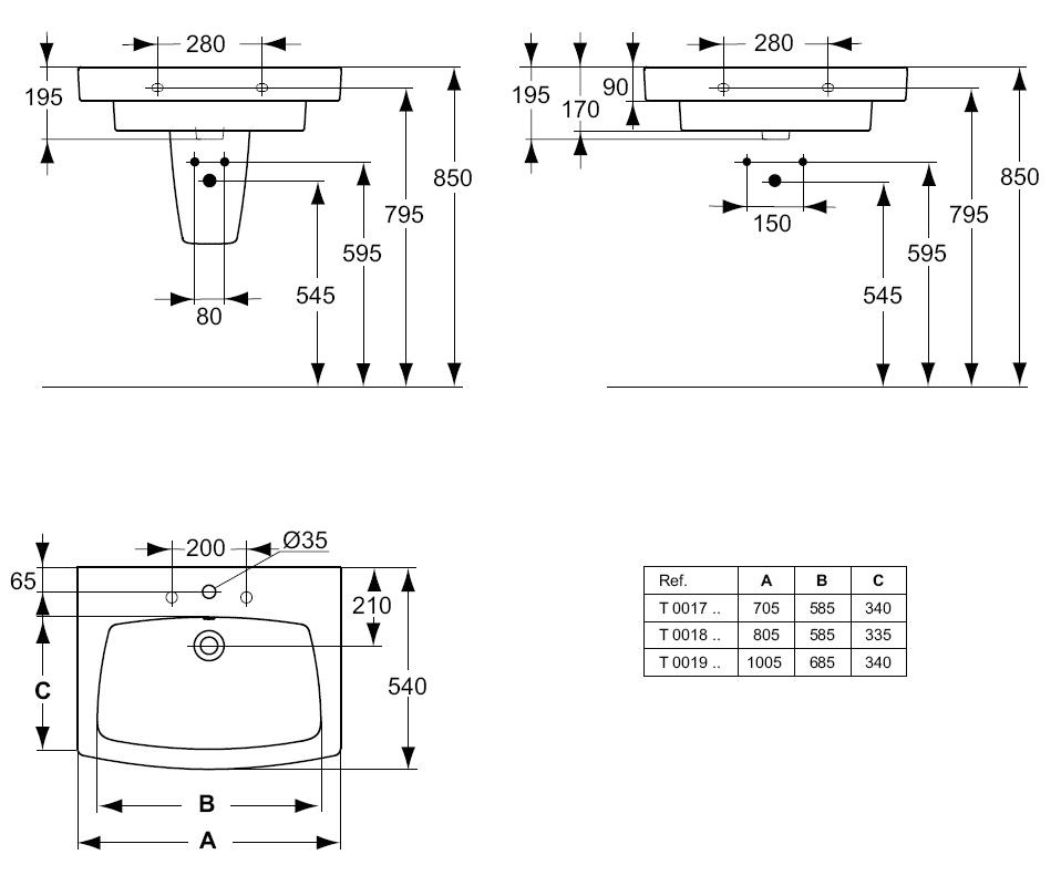 Ideal Standard 21 Ventuno Umywalka ścienna IN SET 70,5x54cm biała T001701