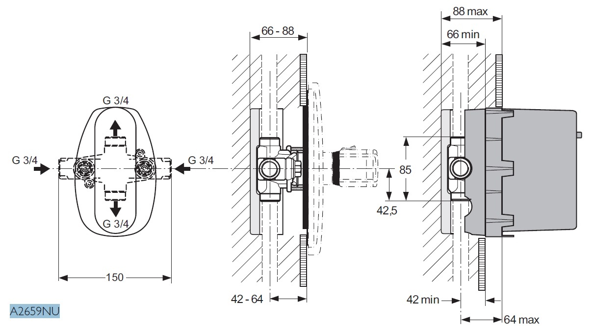 Ideal Standard Termostatyczny zestaw podtynkowy G 3/4 A2659NU