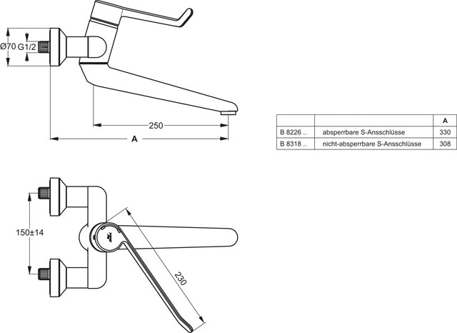 • Ukryte wyciszone przyłącza mimośrodowe z funkcją odcięcia przepływu wody B8226AA lub bez B8318AA